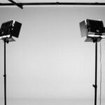 Luzes de chão, de teto, pantógrafos ajustáveis, tripés e projetores de iluminação.